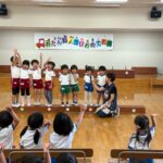 1学期の締めくくりとして終業式を行いました。 みんなで園長先生のお話を聞き、大きな声で園歌を歌いました。