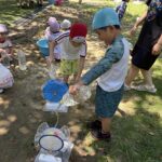 教育保育学科の大学生のお兄さんお姉さんが、年長組さんにいろいろな水遊びを用意してくれました。