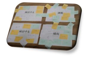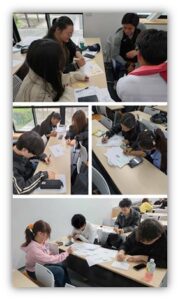 第2回の授業では、少し難しい語を「やさしい日本語」に書き換えるグループワークをしました。スマホで調べたり友人同士で相談したりするなどして、珍解答も含んだ多様なアイデアが出ました。「平易=簡単」ではないことが学べたと思います。