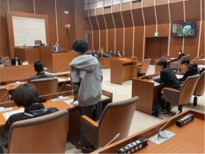 質疑の場では、学生から「議員が市民から受けた要望のうち、市の施策に反映される割合は?」、「コロナ禍のように、国全体が迅速な対応を求められる局面で、地方議会はどのような役割を果たすのか?」といった質問が出され、議員の皆さまは一つひとつに分かりやすく答えてくださいました。