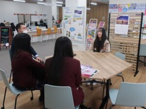 さらに、研究室の合間には地域連携センターも訪ねてもらって、社会貢献活動やボランティアなどの課外活動について知ってもらいました。