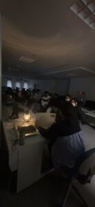 部屋を暗くして、電気ランプや電気ろうそくの明かりのみで怪談がはじまりました…