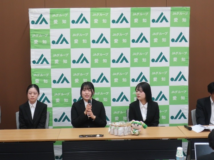 2026年3月4日(水)JA愛知北と本学が共同開発した新商品「夢とろろと越津ねぎのパスタソース」のメディア説明会がJA愛知中央会で開催されました。本学から人間生活科学部管理栄養学科の太田教授とゼミ生3名が出席し、商品の特徴や開発経緯を説明しました。