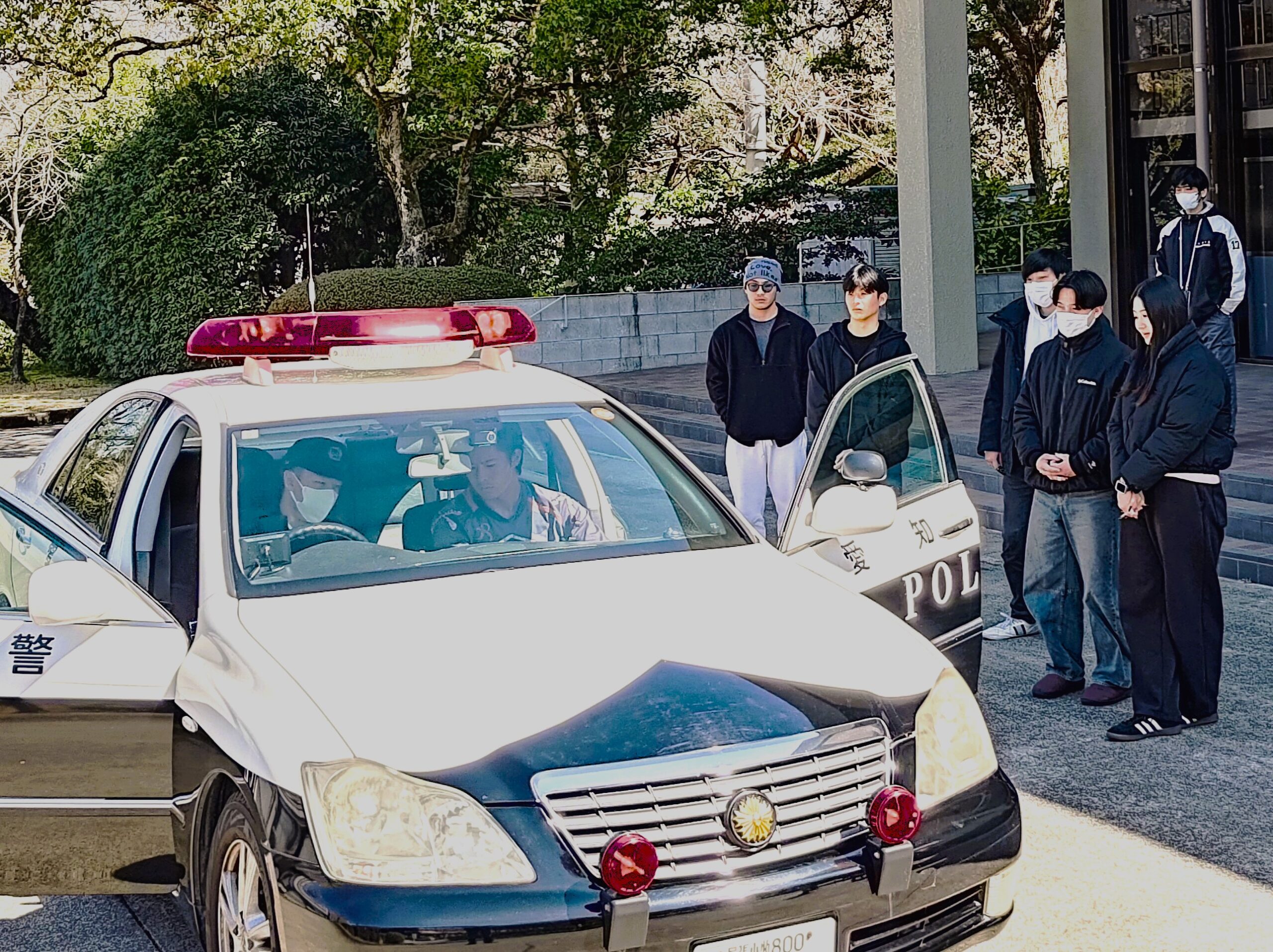 また、パトロールカーの見学・体験も行われ、学生たちは緊張しつつも興味深く説明に耳を傾け、実際に装備を目にして警察の仕事への理解を深めていました。