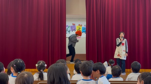 先生からの出し物は「なにがとおったかな?」みんなでクイズを楽しみました。