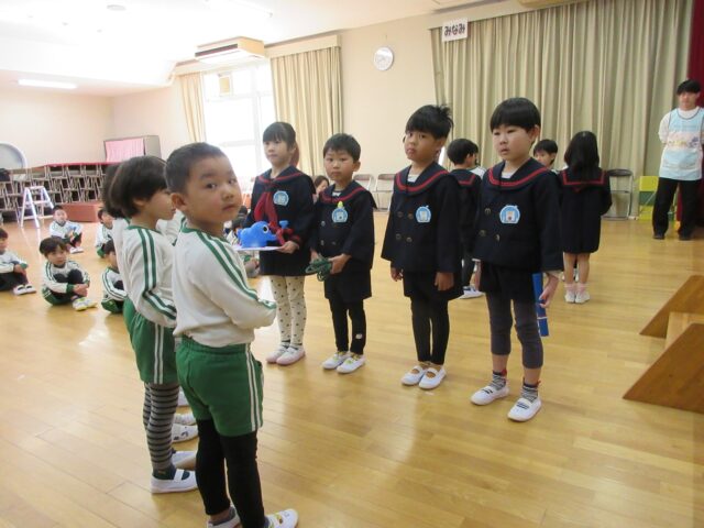 年中さんや年少さんは、この日のために歌や言葉のプレゼントを準備してきました。